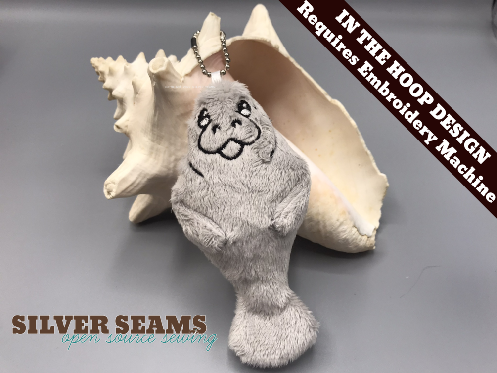 This is a plushie design, made "in the hoop" on an embroidery machine. It produces a tiny manatee charm or plushie that you can keep, gift, or sell.